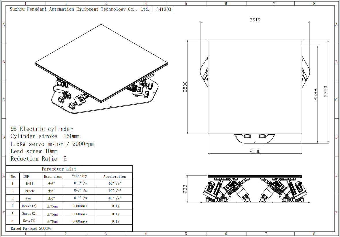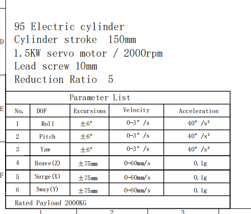 6 Axis Six Degrees of Freedom Motion Platform for Flight Simulator with 2000kg Payload FDR