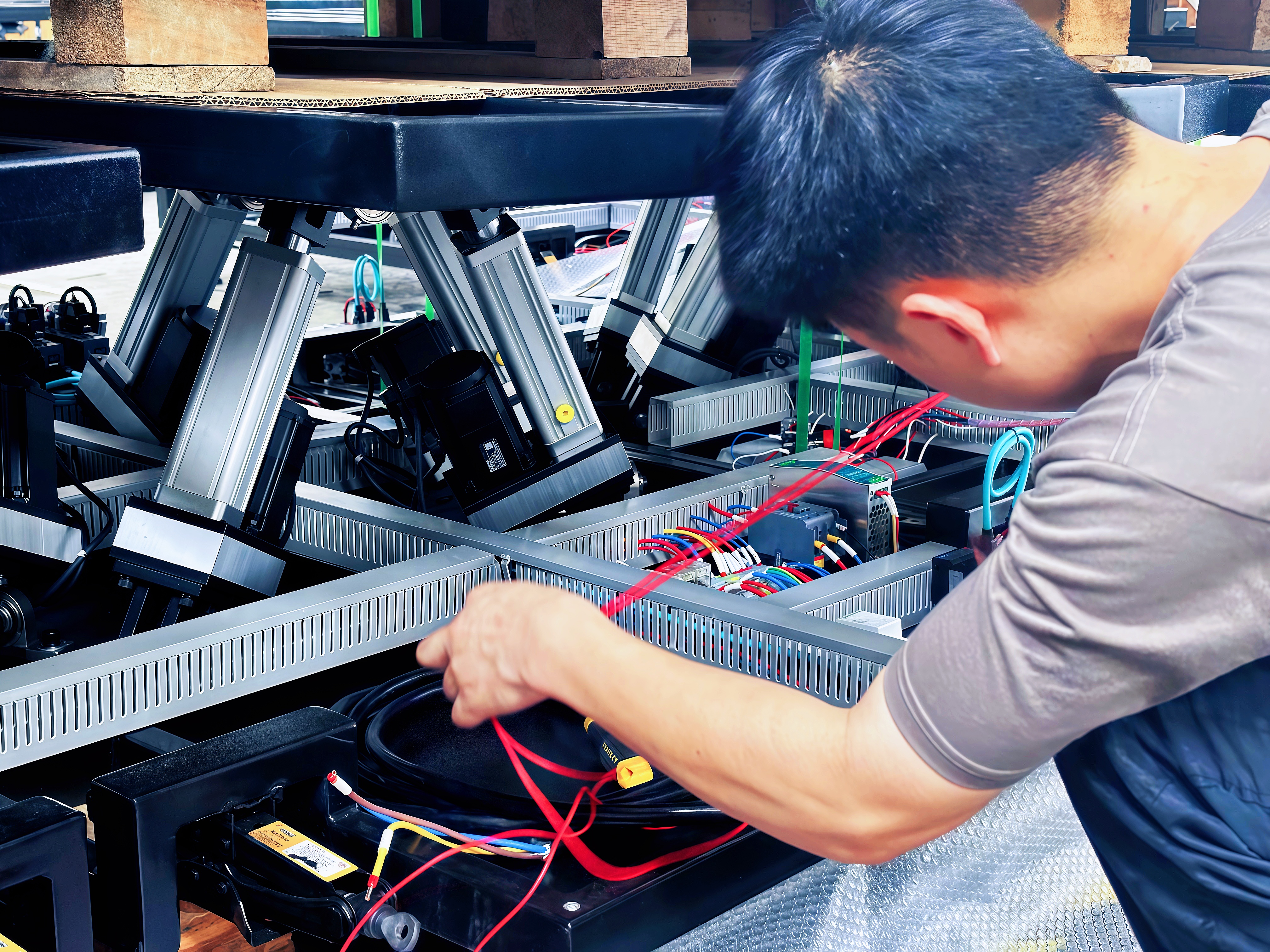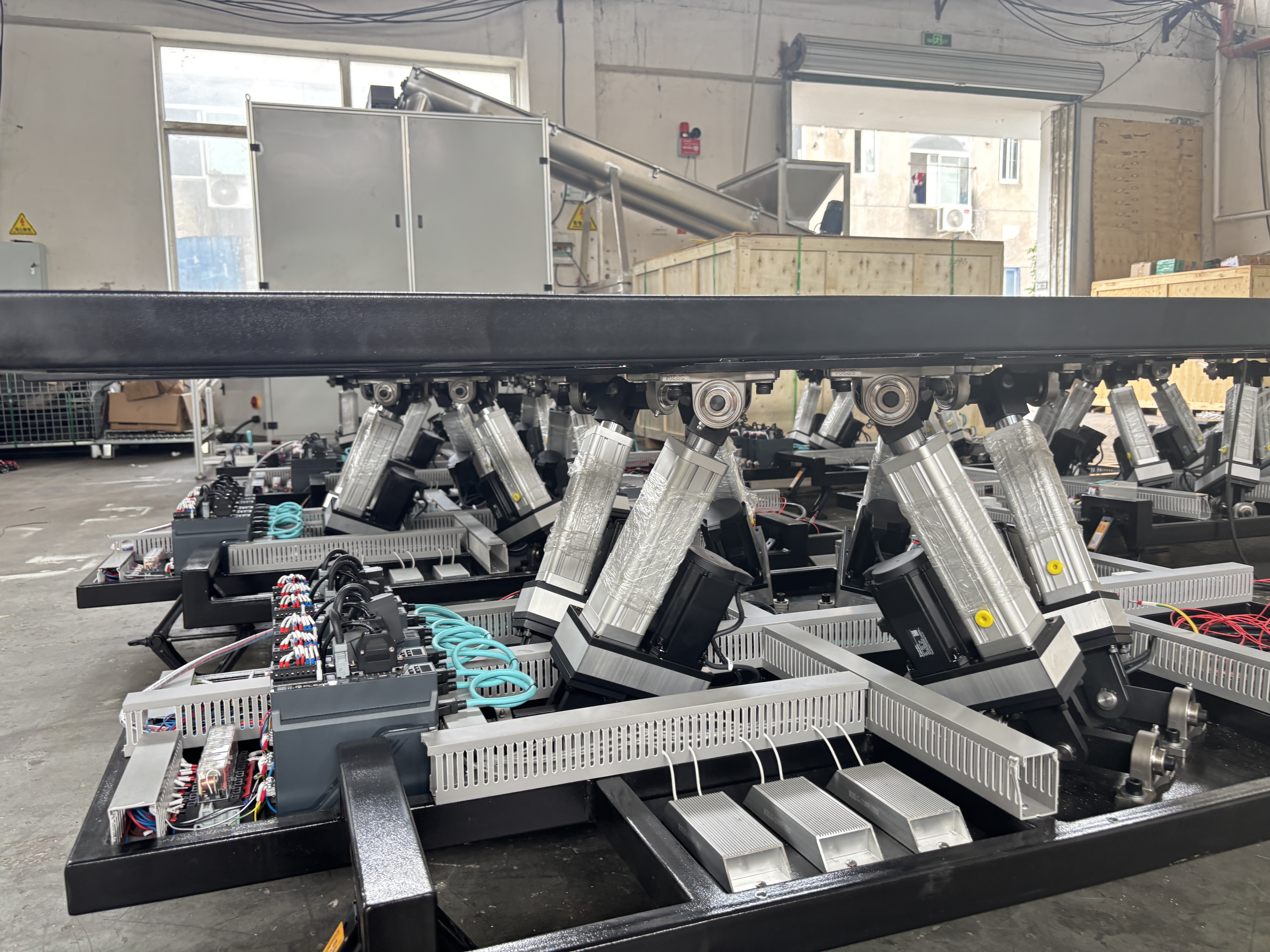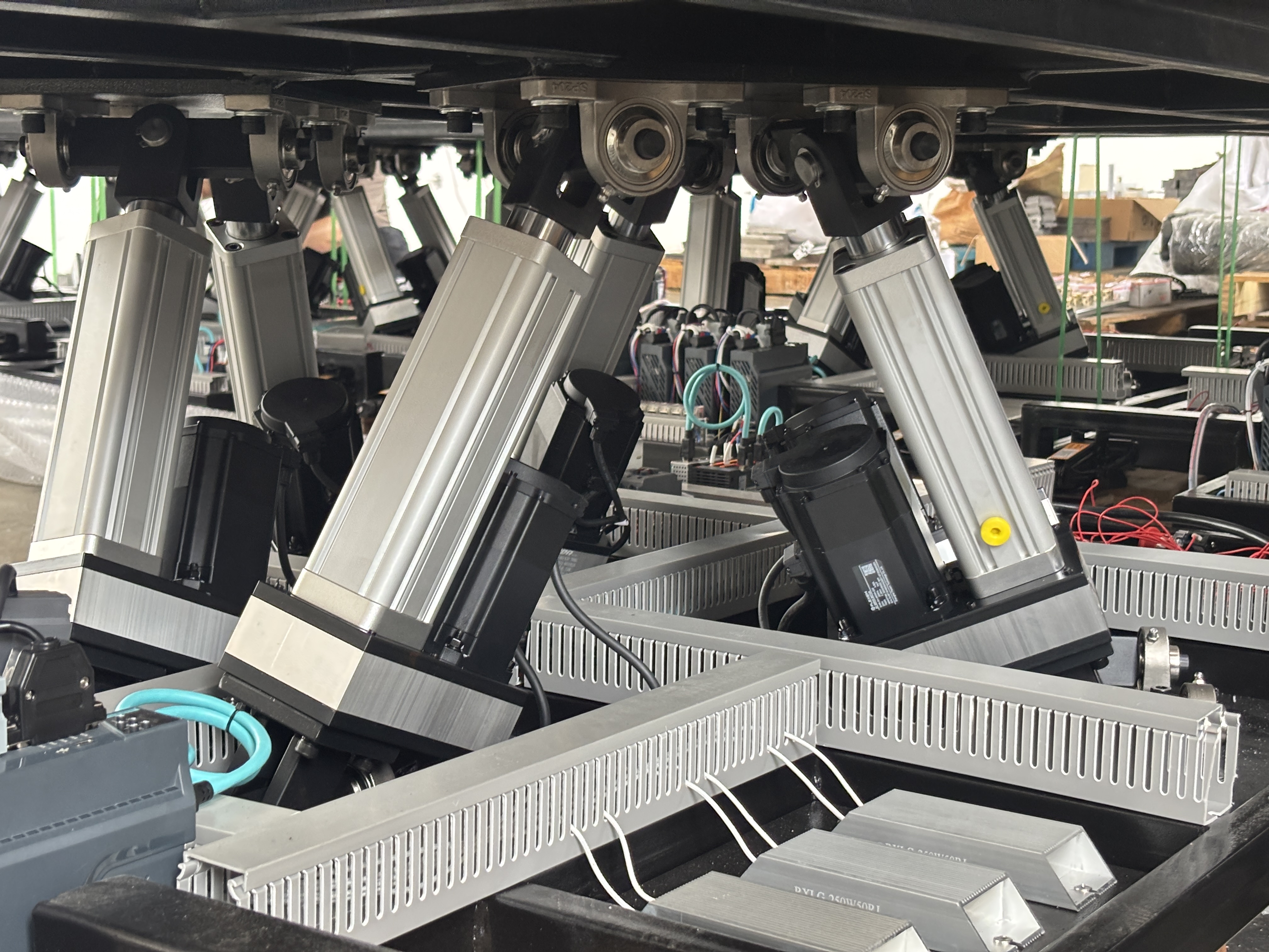 Robust Kinematics: The six independently actuated legs work in perfect synchronization to provide smooth, combined movements across all axes. The structural steel frame is engineered for maximum stiffness and durability, ensuring a long operational lifespan under continuous heavy use.
